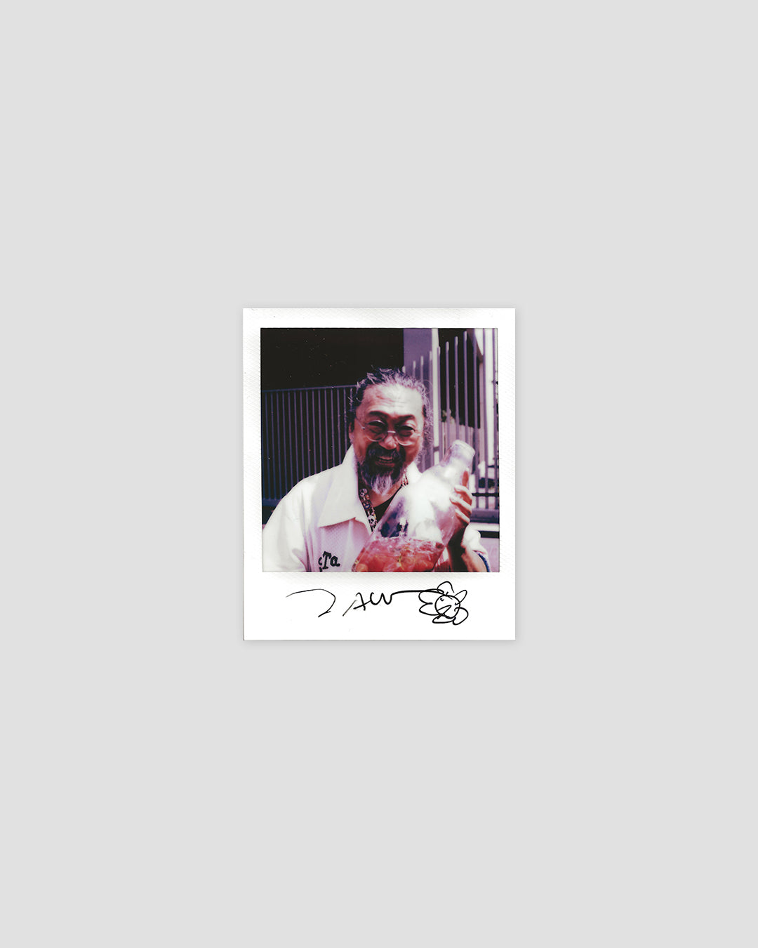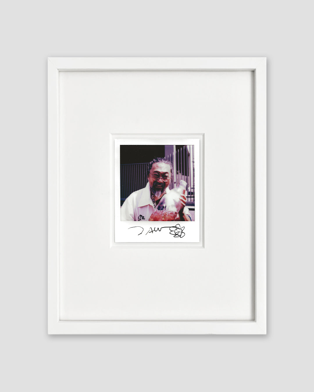 This polaroid was taken after Takashi Murakami poured Agutos a cup of strawberry-infused ice water—a gracious gesture from one of today's most celebrated contemporary artists. Murakami also signed the front of the polaroid along with his famous flower icon, cementing the moment between artists.